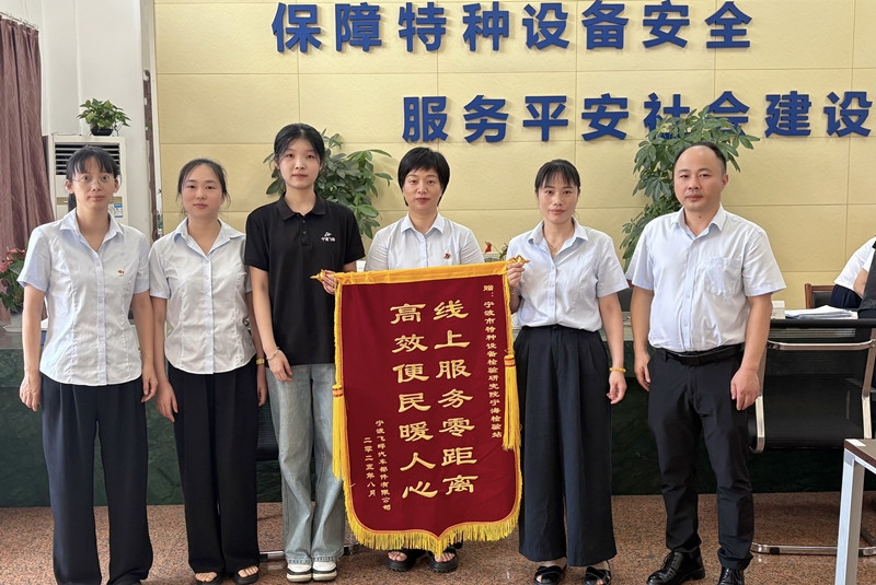 8月29日,宁波飞晔汽车部件有限公司派员至宁波市特种设备检验研究院宁海检验站,将一面印有“线上服务零距离,高效便民暖人心”字样的锦旗送至服务窗口工作人员手中,对市特检院暖心细致的线上服务表示衷心感谢。